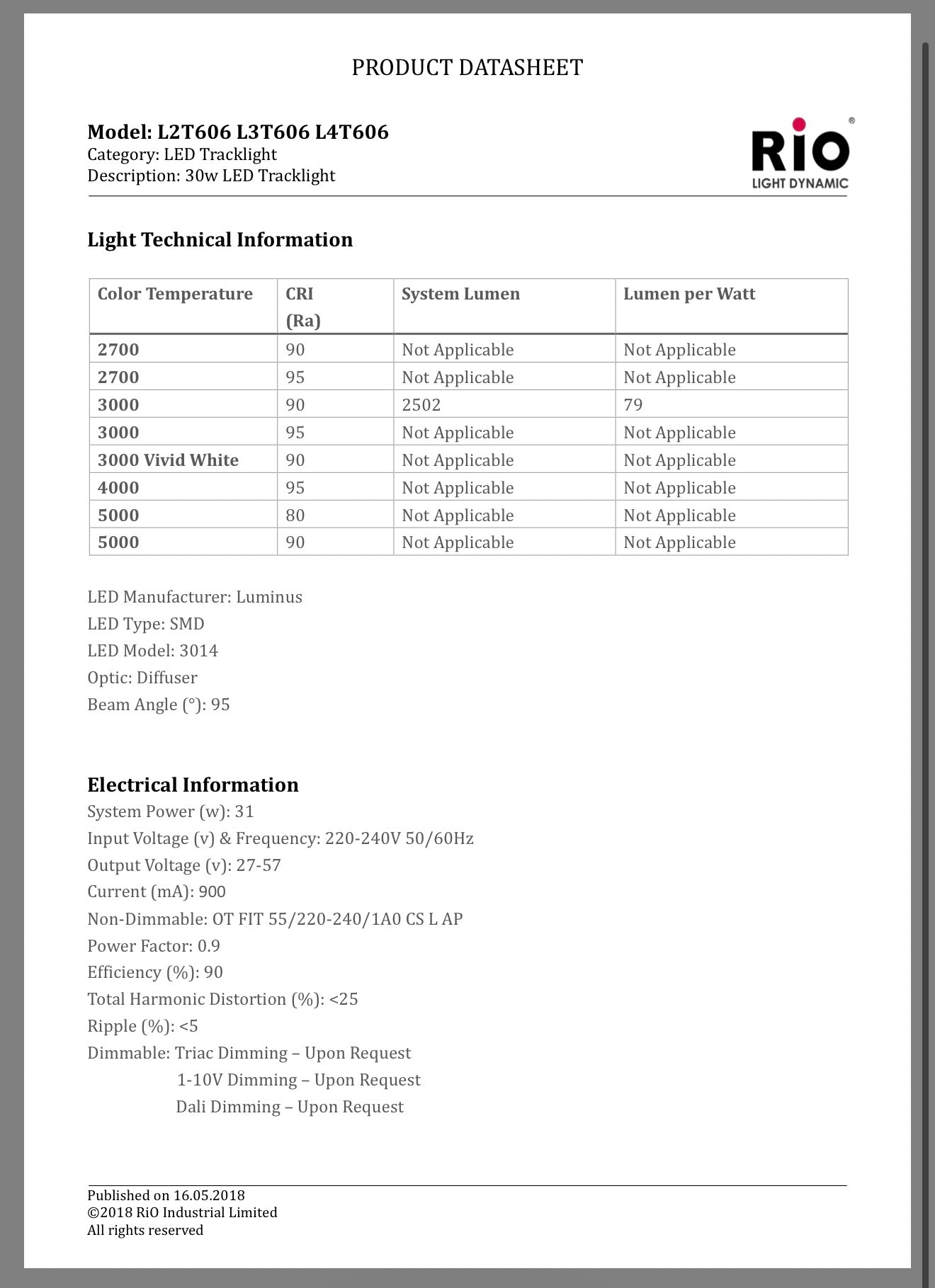 Luminous Flux after 50000hours (Im): LM80 Comply
